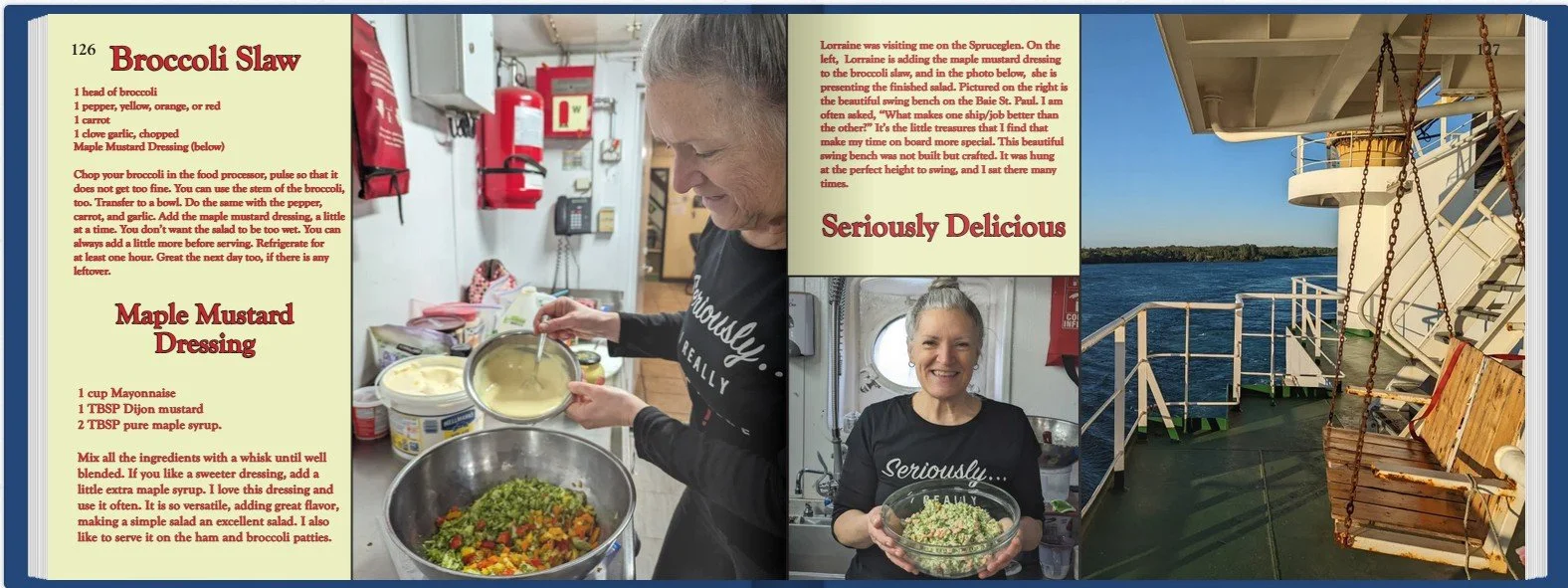 I am a cook, entrepreneur, and self-published author. I write a daily blog sharing photos of my days on various vessels and the meals I prepare for my crew. The recipes I cook, the adventures on different ships, and photos of the ever-changing scenery can be found in my first cookbook Ship to Shore Chef Recipes and Stories as I Sail Through My Day. I followed with a second cookbook More Recipes and Stories as We Navigate Healthier Eating. The book features recipes made without processed sugar, grain and flour. For the young ship watcher, I share my personal photos and stories which I had illustrated for a children's book The Stowaway Adventures of Mitchell Mouse. Join me on my adventures as we sail the Great Lakes, St Lawrence Seaway, Rivers, and East Coast.