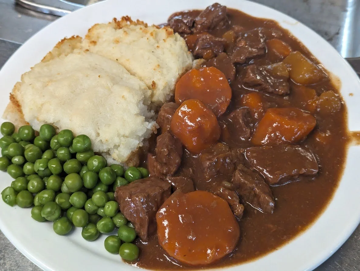 I had leftover mashed potatoes for the roast pork dinner the other night so I added a little sour cream, whipped them up and baked them. They went well with the beef vegetable stew. Beef vegetable stew smells so good when it is cooking.