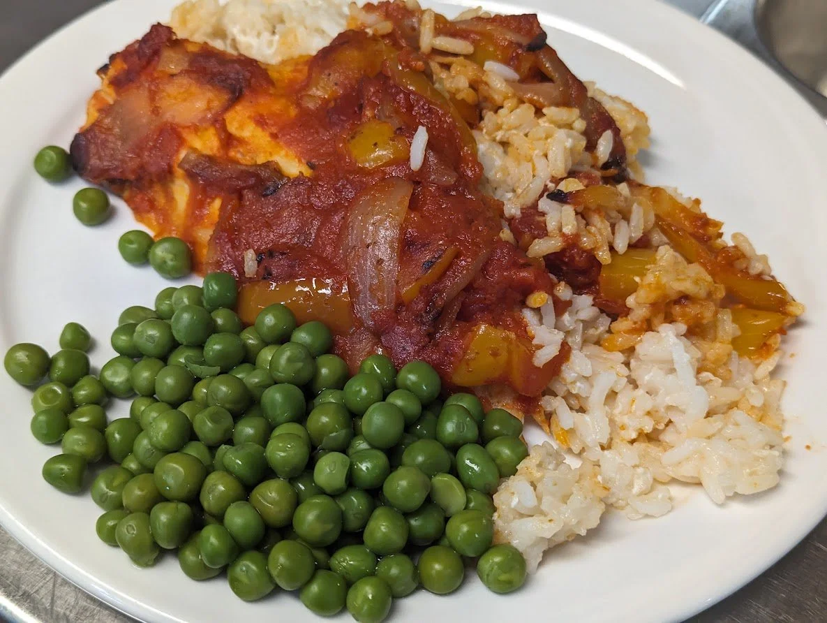 Using up the leftover fried peppers, onions and tomato sauce, I added a few more ingredients and made fish creole for supper.