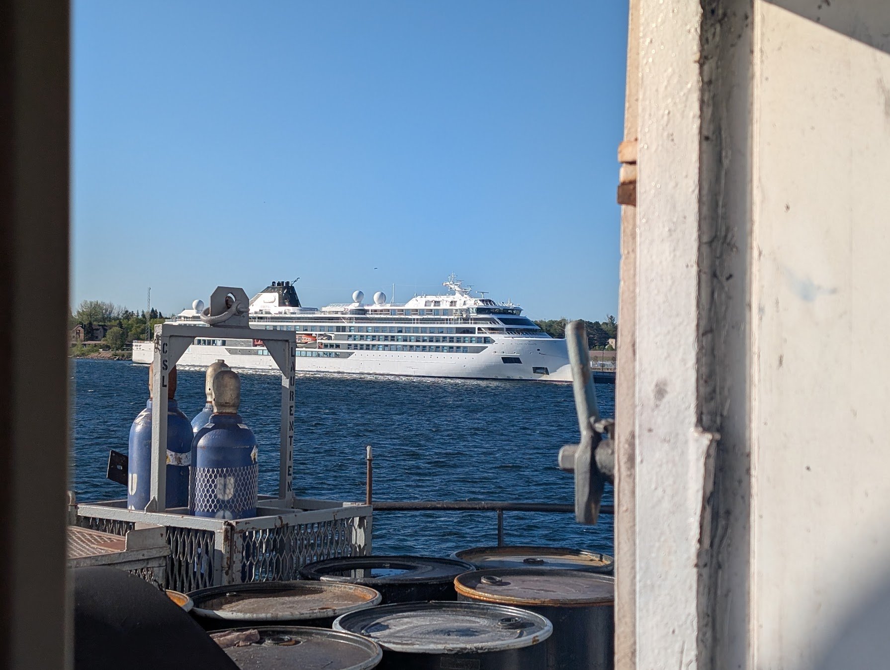 I was delighted to see Montreal in sight Monday morning from my forward-facing porthole. I live north of Montreal so sent out a wave to Lorraine. She lives one km from me and although I knew she would still be asleep at 06h00 I sent out a wave filled with joy.