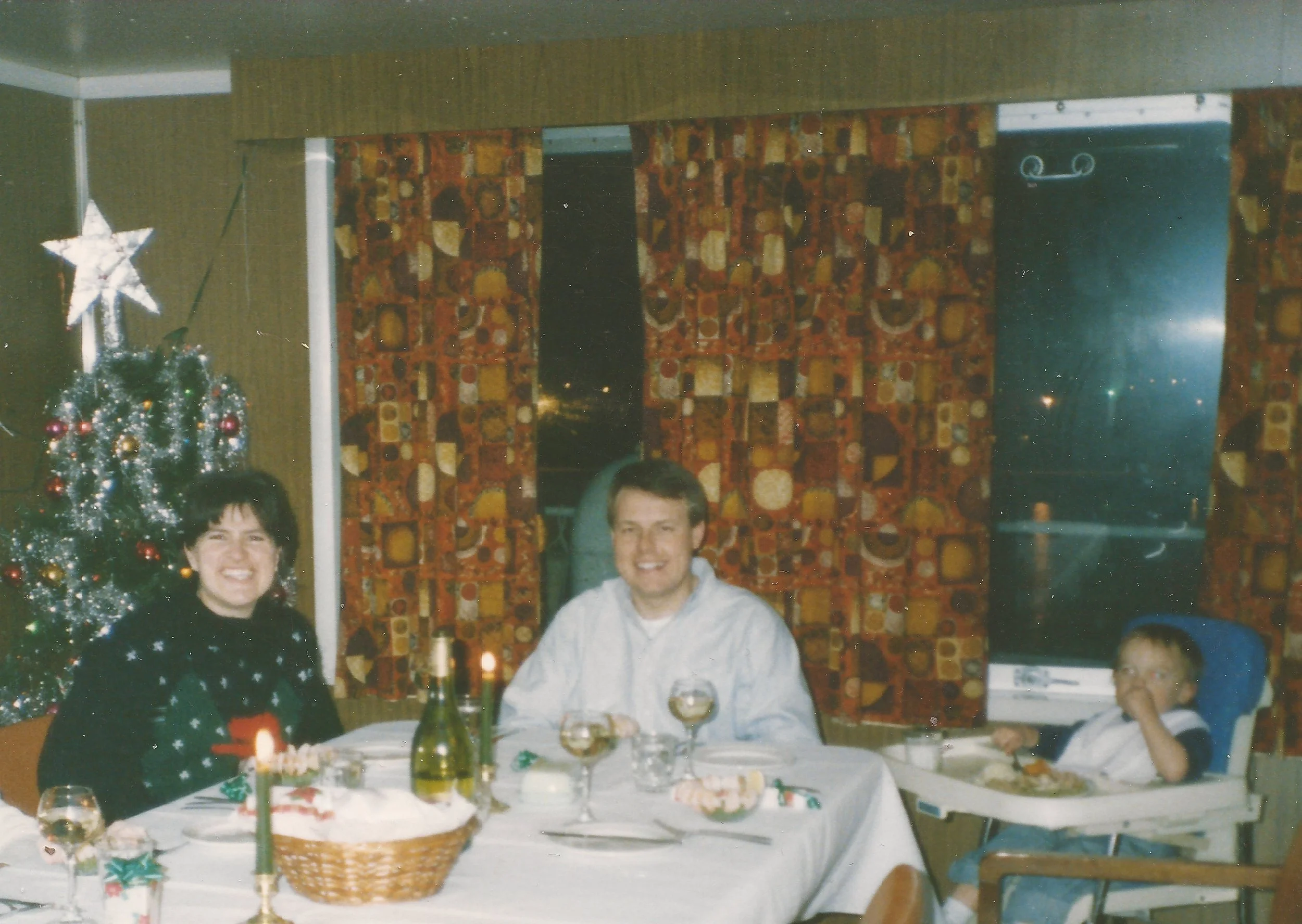 Lay-up has its perks and I was able to invite a childhood friend and her little family to come onboard for a Christmas holiday dinner. As I look at this picture her son, now has a family of his own.