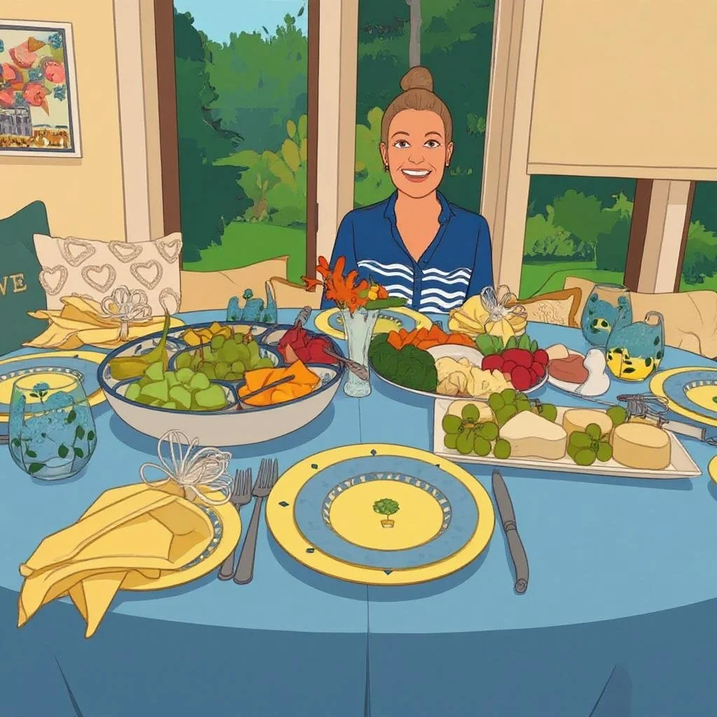 It was fun to be a part of the birthday party “Ladies who lunch” The table was set beautifully. The plates/ glasses and accessories were so pretty. I sat beside the cheese tray and tried each one. I thought it was fun that one was heart shaped.